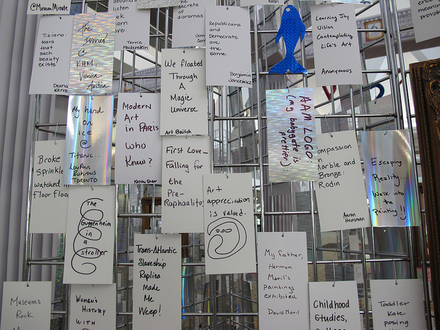 I think that in part, I was so keen to pick up on this student’s points is that I had just seen a display at the Annual Conference of AAM. In a very simple setup – conference participants were asked to describe the “Most Unforgettable Museum Experience in Six Words.”